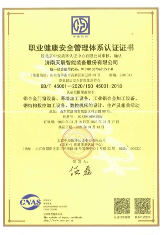 天辰獨立起草的鋁型材加工中心國家標準《GBIT28390-2012》頒布實施 研制鋁型材鋸切中心(實現本土化生產)