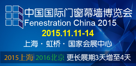 11月11日至11月14日,2015第十三屆中國國際門窗幕墻博覽會在上海虹橋國家會展中心隆重舉行。此次FC 博覽會在以往的基礎上,三大節能熱點主題展區全新亮相華東市場——系統門窗、門窗遮陽通風一體化產品和多元化的幕墻產品將成為最大亮點!在這里,您將不僅會看到來自全國各地的門窗幕墻行業企業帶來的最新材料,還將把門窗幕墻企業、咨詢公司的新技術、新工程作為主要的內容進行交流和展示。