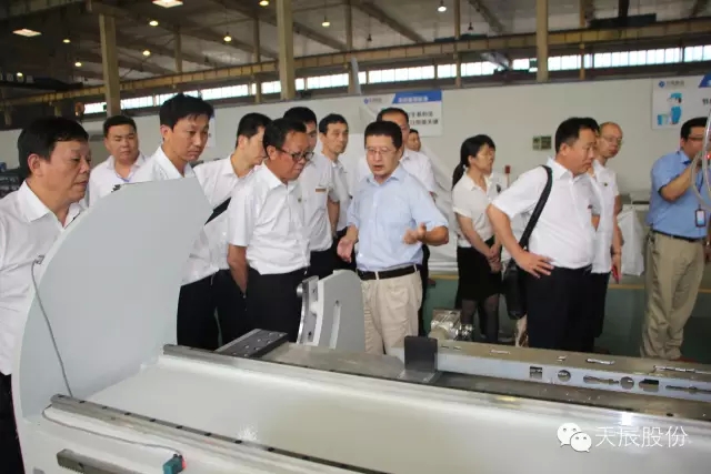 在參觀鋁機車間時,來自武漢房地產、門窗幕墻行業的專家、企業家們對天辰股份目前處于國內領先水平的鋁機產品表示了充分肯定,并對其研發、工藝流程進行了詳細詢問,公司陪同人員對考察團提出的問題一一作了解答。