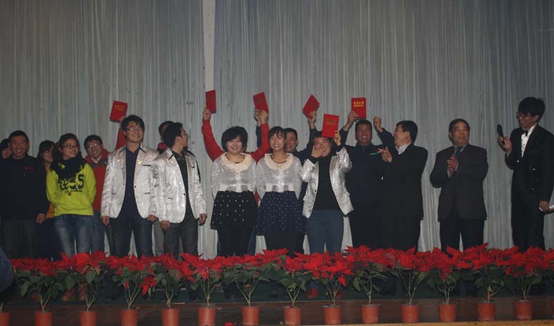 ??? 經評委打分,來自車庫技術部的《天辰style》榮獲一等獎,工會的《三句半》和數控公司的《相聲》獲得二等獎,行政部的小合唱《我相信》、車庫公司的男聲合唱《兄弟》和數控公司的女聲合唱《一個像夏天 一個像秋天》獲三等獎。公司領導為獲獎個人頒獎。整場晚會內容豐富,形式新穎,高潮迭起,精彩紛呈,受到了廣大員工的好評。