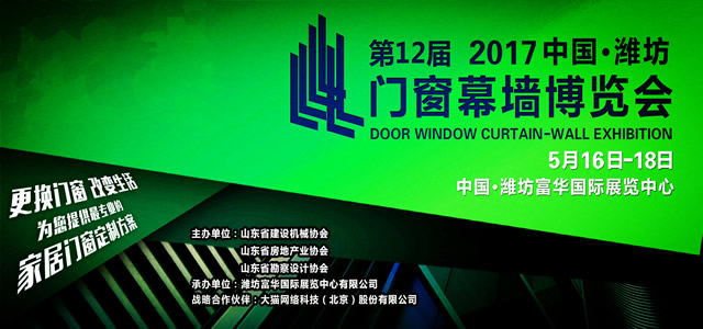 2017年5月16日,由山東省建設機械協會、山東省房地產業協會、山東省勘察設計協會攜手主辦的第12屆中國·濰坊門窗幕墻博覽會在濰坊富華國際展覽中心盛大開幕! 本屆博覽會以“創新、綠色、合作、共贏”為主題,旨在為門窗幕墻、房地產和建筑設計企業