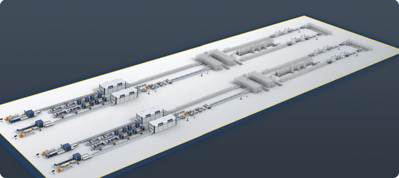 門窗智能化生產線實現對門窗整個生產過程的全面管控,設備均可接入智能線 MES 中控系統進行統一管理調度。