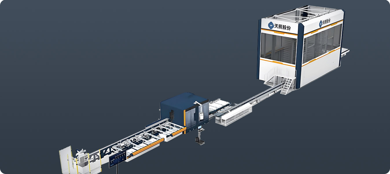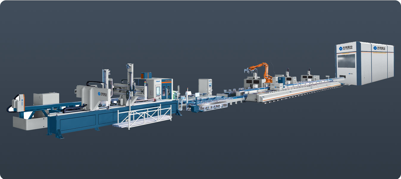 行業領先的幕墻智能生產線,可完成幕墻公母立柱、橫梁、裝飾線條等多種型材的智能鋸銑加工。在天辰 MES 中控系統的精準管控下,實現自動上料、智能鋸銑、自動分揀、機器人柔性搬運、加工中心智能鉆銑、全自動下料碼垛。